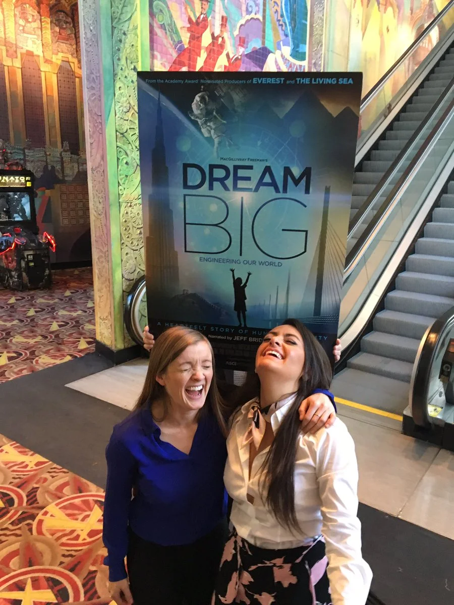 Instant best friends: Dream BIG co-stars Bang and Menzer Pehlivan of CH2M share a lighter moment after the IMAX premiere in NYC on February 14. The big screen ode to engineering is now playing in 50 IMAX theaters across the U.S.